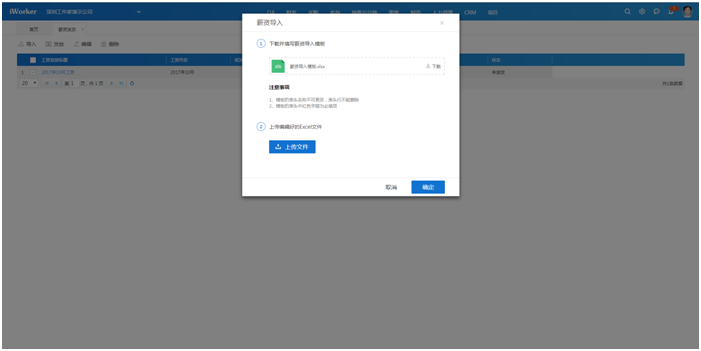 用户可以通过导入来上传工资信息,上传后无误点击发放,则员工即可查看自己的工资明细。