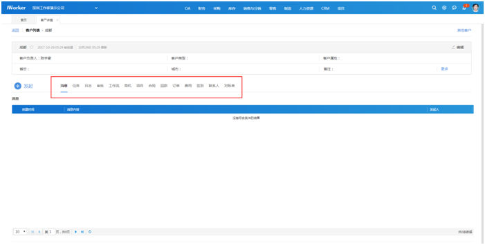 日常的客户管理中,会产生的与客户相关(关联了客户)的任务、项目、报销,相关人员都可以从这里查看到。同样,用户可查看的内容为自己有权限的任务、项目、报销。