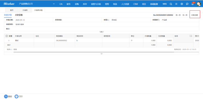 提交之后,进入外借单详情页,点击右上方的管理创建,即可关联创建归还单。