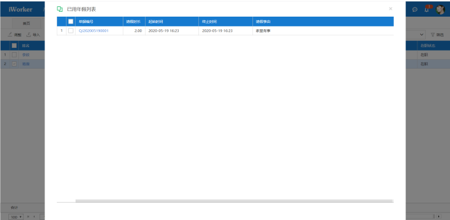 点击“已用年假”,可以穿透到“已用年假明细列表”