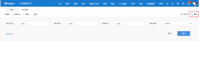 商机管理用于管理公司业务上的商业销售机会。避免遗漏。业务人员收集到一个商业销售机会后,录入到iWorker中,后续可以对这些商业机会进行跟踪。每次跟踪后用户可以修改商机的状态、阶段和预计签约金额。打开客户-商机菜单,查询商机记录,可以打开商机详情: