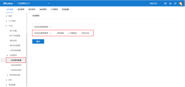 进入【后台设置-业务配置-CRM-信用额度-信用额度管理】,勾选“启用信用管理”,点击“确定”,即可成功启用信用额度管理。