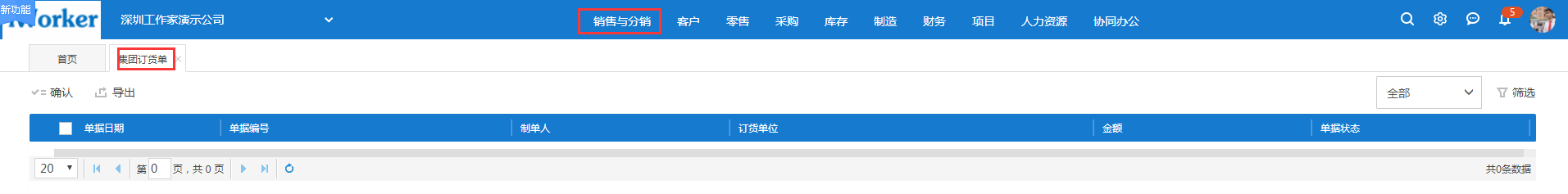 作为供货公司也可以【销售与分销-集团订货单】中查看所有集团订货单。