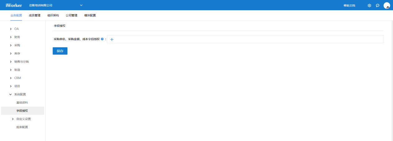 对于需要管理采购成本的用户,可以前往【后台业务配置-系统配置-字段授权】进行采购单价、采购金额、成本字段授权,具有权限的用户,在单据上可以录入以及查看采购单价、采购金额、成本字段。系统默认全公司用户都有权限查看。