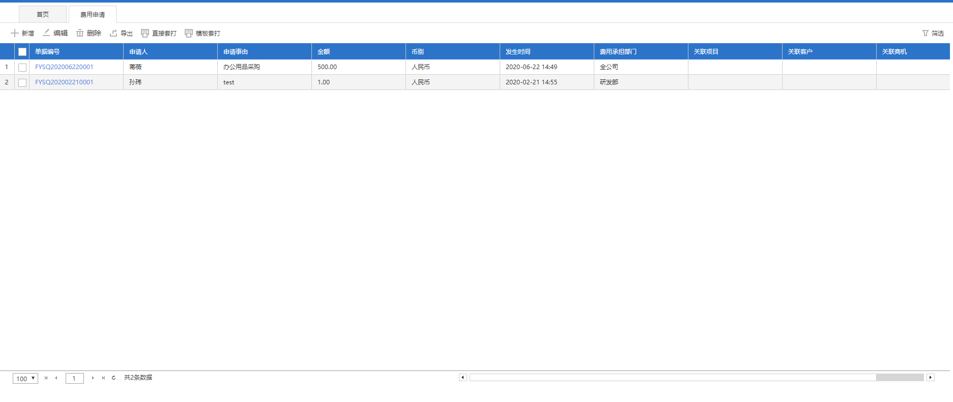 进入【费用报销-费用申请】,即可查看到相应的费用申请数据,并进行相应的操作。