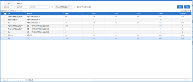 点击对应账龄数字,可调出对应商品的账龄明细列表,如下图